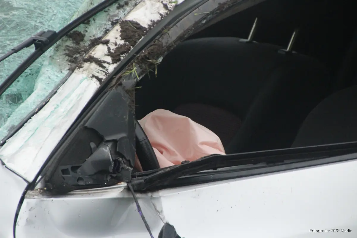 Een bergingsbedrijf heeft de beschadigde auto afgesleept.