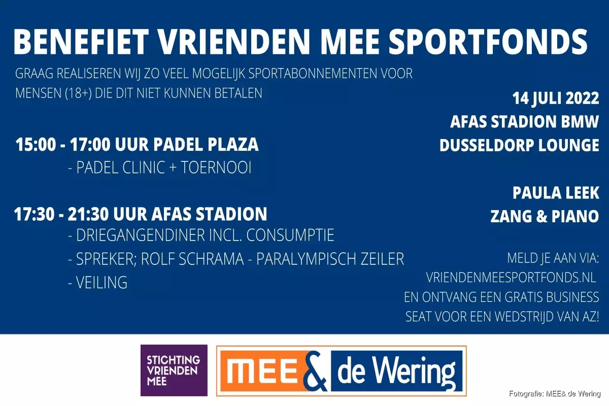 Door Corona heeft MEE & de Wering de afgelopen twee jaar helaas niet de mogelijkheid gehad om iets te organiseren, maar men is ontzettend blij dat men op donderdag 14 juli eindelijk weer een benefietavond mag organiseren voor het Vrienden MEE Sportfonds!