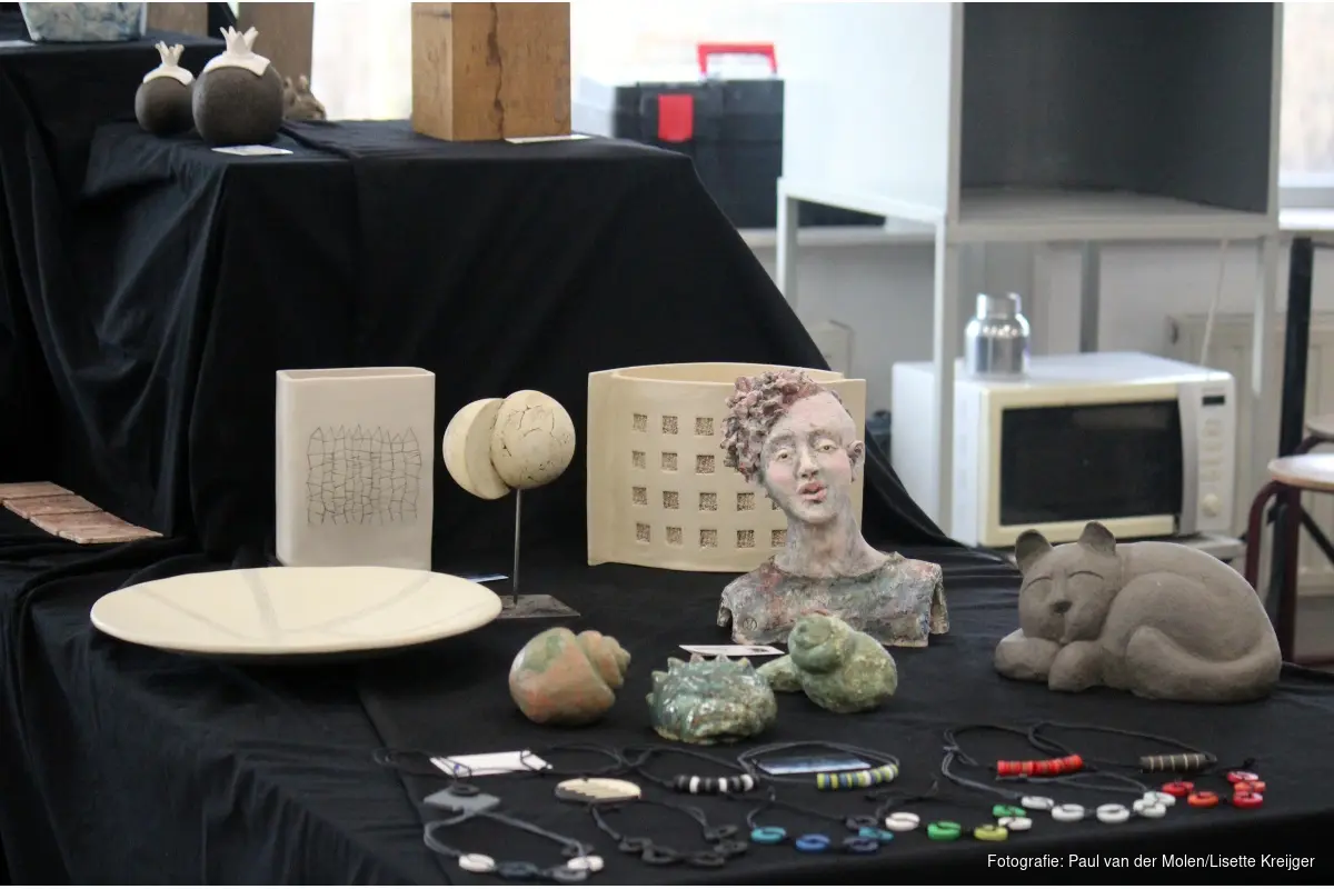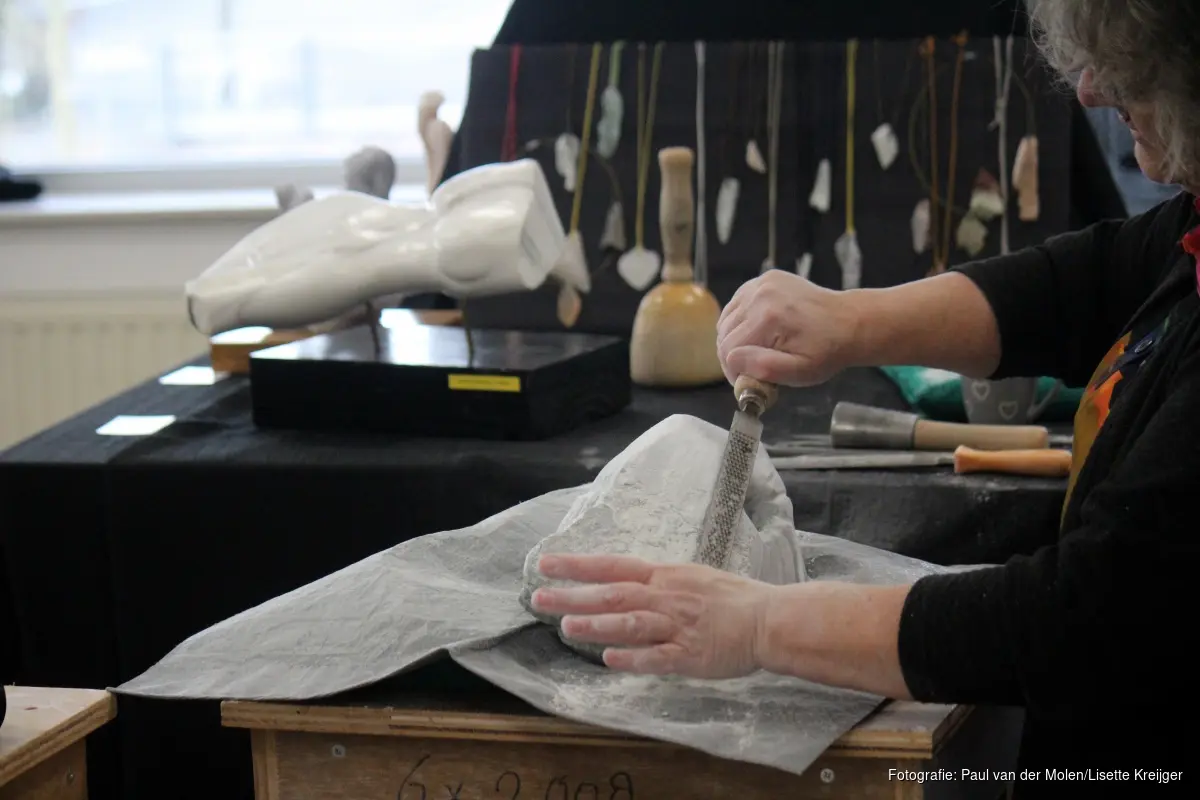 DIJK EN WAARD – “Een drukbezochte dag, met veel inschrijvingen, maar er zijn ook nog plaatsen open!” De voorzitter van Atelier 6, John Sombroek, sprak tijdens de slotborrel vol lof over de open dag van Atelier 6 die op 11 januari jl. plaats vond. Het atelier dat al sinds 1980 bestaat, volledig gerund door vrijwilligers, is gevestigd aan de Daltonstraat 11a te Heerhugowaard met vier prachtige lokalen waar van alles te beleven valt. Je kunt op diverse dagen in de week een cursus volgen (met sturing van een docent) of meedoen met een werkgroep (zonder sturing van een docent, maar waar wel een ervaringsdeskundige bij is die tips geeft). “Het is de voldoening van het zélf dingen maken,” aldus Sombroek, die zelf het fraaie chimpansee-werk creëerde dat je bij binnenkomst ‘begroet’. De kunst die die dag tentoongesteld werd is van hoge kwaliteit.