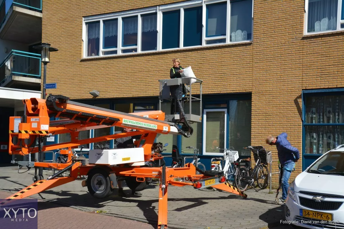 Om toch contact met zijn moeder te krijgen zocht hij contact met André Stammis van Stammis Verhuur. 'Ik heb nog een camping in Oudkarpsel en hoewel ik heel veel zelf doe heb ik af en toe wel eens wat spullen nodig die ik dan huur bij Stammis. Gisteren belde ik André op of hij wat voor ons kon betekenen en nu staat hij hier met een hoogwerker. Dat is toch fantastisch!'