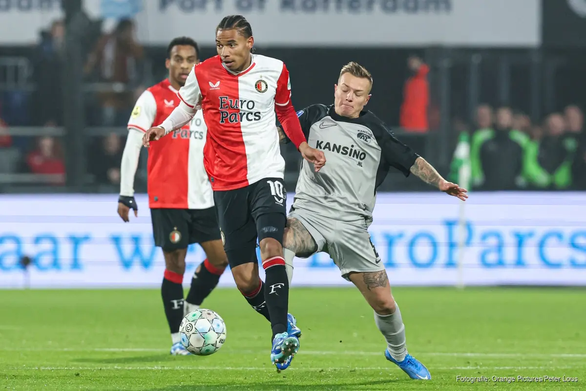 ROTTERDAM - Feyenoord heeft dankzij een prachtig schot van Quinten Timber met het kleinst mogelijke verschil van AZ gewonnen (1-0). De regerend landskampioen staat daarmee vaster op de tweede plaats waar AZ zakt naar plaats vier.