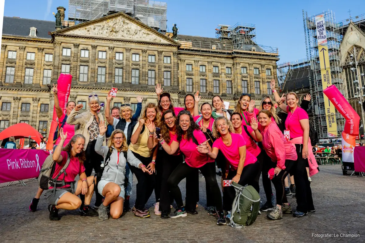 De combinatie van de gezelligheid onderweg met versierde straten, uitgebreide verzorgingsposten en swingende muziek, het kunnen wandelen voor een goed doel én de bijzondere startlocatie van de drie langste afstanden op de Dam in Amsterdam maakt de Dam tot Dam Wandeltocht voor Pink Ribbon een van de grootste wandelevenementen van ons land. Sportorganisatie Le Champion verwacht zo’n 14.000 wandelaars aan de start.