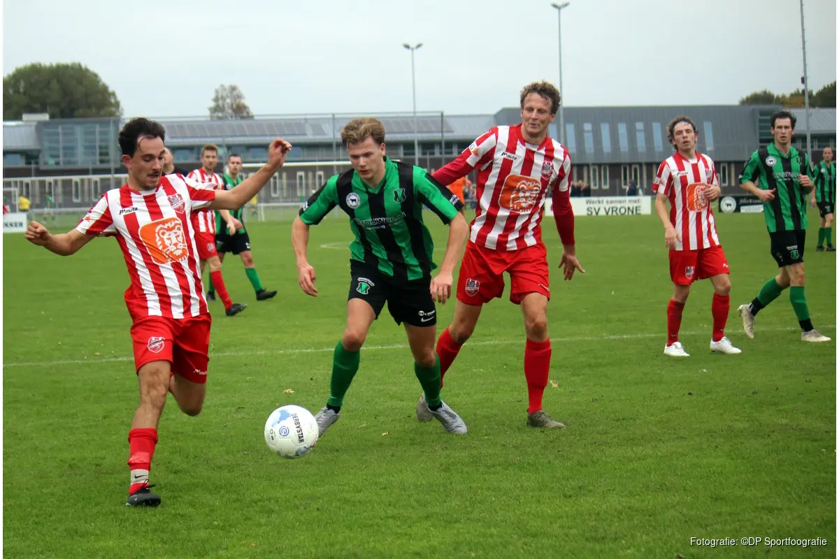 Vrone voerde de druk na de rust duidelijk op en kreeg de nodige kansen. Uit een vlotte aanval wist Sven Bruins halverwege de tweede helft dan ook de verdiende gelijkmaker te scoren. De thuisploeg ging voor meer, maar dankzij de Westzaanse doelman bleef het bij een remise: 1-1.