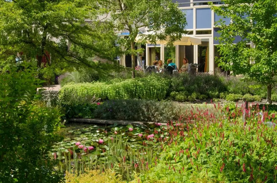 Het Hospice heeft een fraaie sfeervolle huiskamer en is omringd door een mooie tuin.